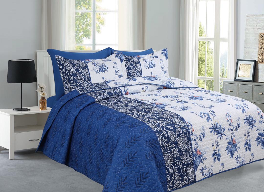 Lillies Navy- 6PCS Quilt Set Reversible Bedspread